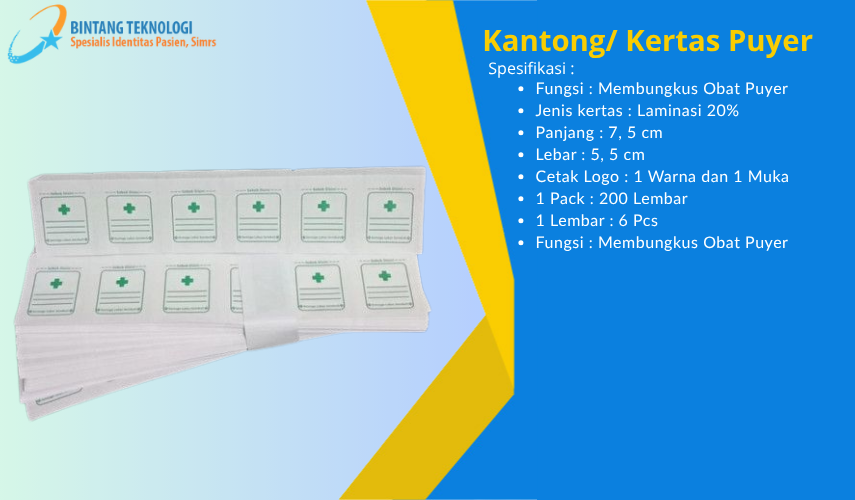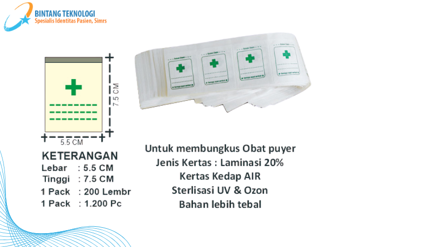Berfungsi untuk membungkus obat puyer, kertas puyer logo umum isi 1.200 pcs.